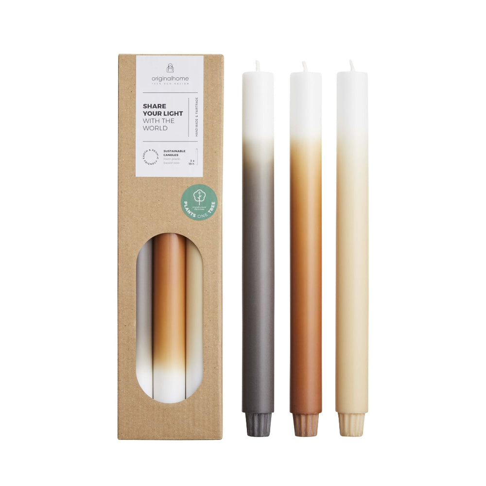 Embrace design and sustainability with these Organic Candles! Graduated candles fade from natural white into their colour.