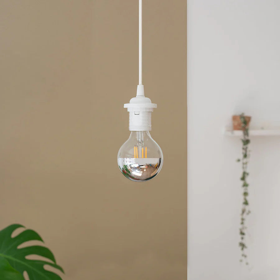 7W E27 Mirror Cap LED bulb for use in all standard lampshades and tablelamps. Clear glass with visible filament and mirror cap the reflect lightbackwards. Use where you want reflected light.